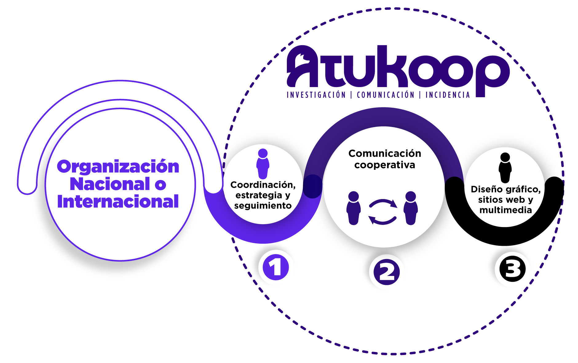 Somos una cooperativa de profesionales comprometida con la transformación de la realidad mediante prácticas inclusivas y sostenibles. En Atukoop, nos guiamos por los principios del cooperativismo, el feminismo y la economía solidaria. Nuestra visión es crear un mundo donde las comunidades prosperen a través de procesos de comunicación claros, análisis de datos y estrategias colaborativas.