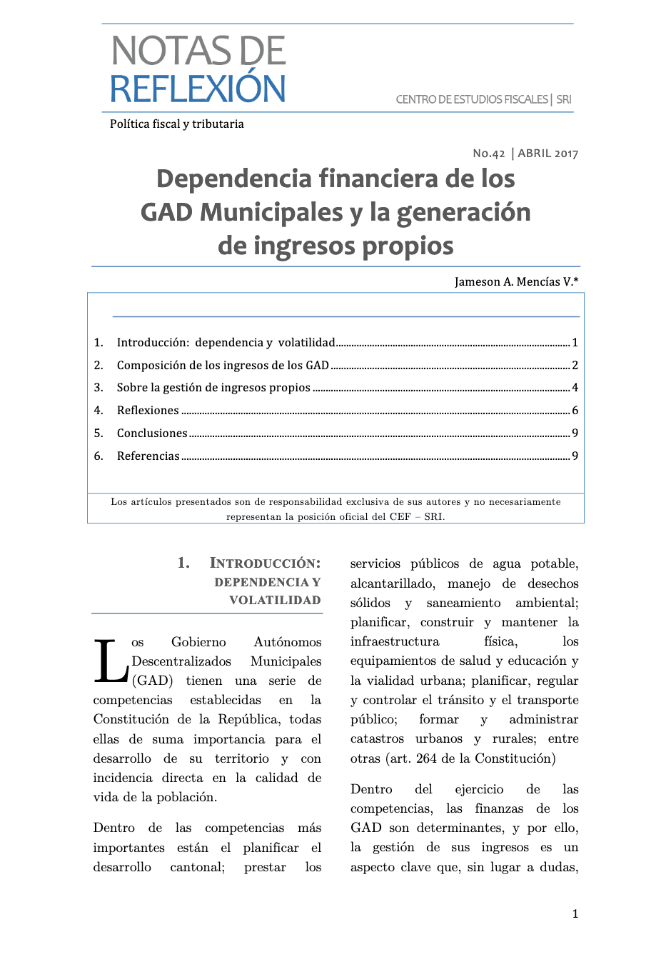 Mencias, J. 2017 – Notas de Reflexión Política Fiscal y Tributaria, Centro de Estudios Fiscales, No. 42, Abril 2017.